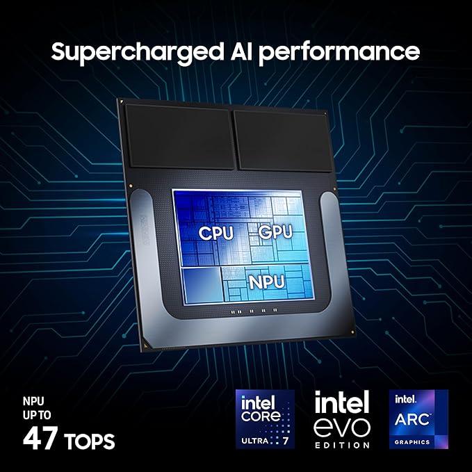 • POWER FOR YOUR MOST PRODUCTIVE DAYS: Galaxy Book5 Pro 360 models come with a new Intel Core Ultra 7 processor 256V with a higher-performance Intel ARC graphics & newly added AI neural processing unit (NPU) that reaches as high as 47 TOPS to achieve Copilot+ AI.
