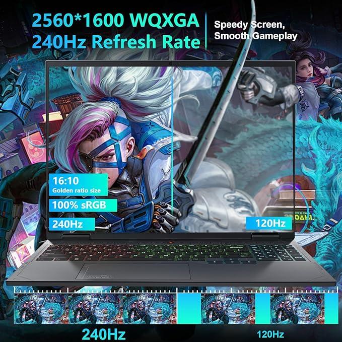 [Immersive 240Hz Display: See Every Move with Precision] 16" WQXGA (2560 x 1600) Ultra-Crisp Display, 240Hz ultra-high refresh rate with pro-grade color accuracy for a seamless gaming and creative experience.